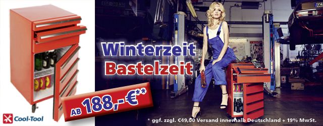 Die Temperaturen fallen und die Schrauberzeit beginnt. Wie ist es wohl beim "Werkeln" ein kühles Bier zu genießen? Finden Sie es mit unserem Werksattwagen mit integriertem Kühlschrank selbst heraus!
