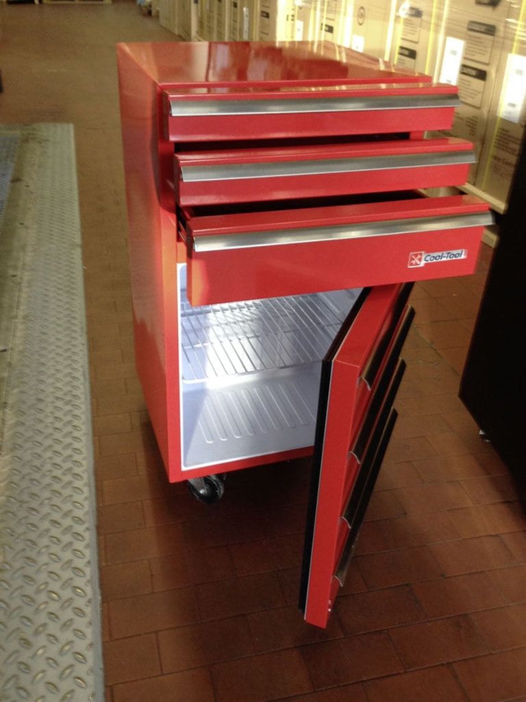 Der Morgen startet mit einer sensationellen Nachricht: Gerade wird der Container mit unseren brandneuen Cool-Tools in unserem Lager entladen! Ab sofort ist der Werkstattwagen-Kühlschrank wahlweise mit 2 oder 3 Schubladen in Schwarz und Rot erhältlich!