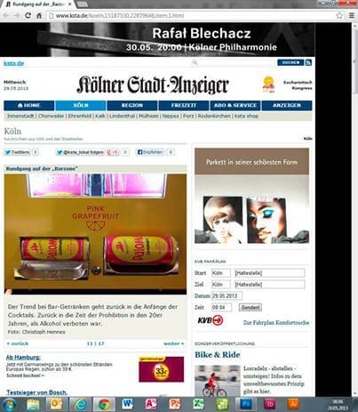 Übrigens: Auch der Kölner Stadtanzeiger war auf der barzone und entdeckte unsere Innovation, den Dosen-Dispenser-Kühlschrank – hier gezeigt im Design von unserem Kunden Paloma.