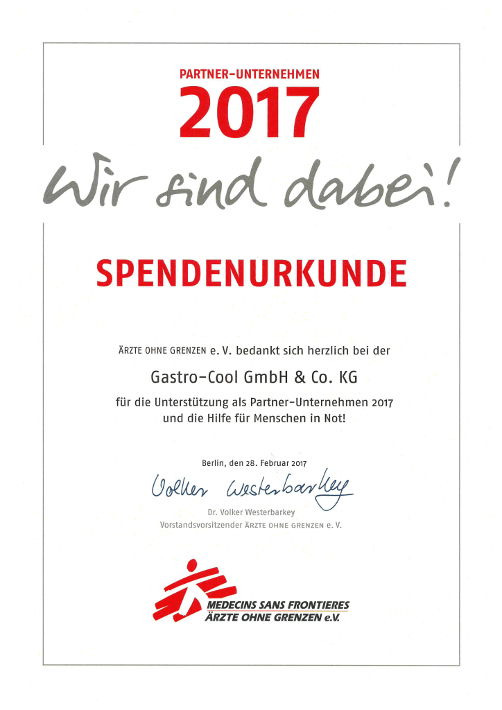 Gastro-Cool GmbH & Co. KG versteht sich als aktives Mitglied der Gesellschaft. Der Erfolg unseres Unternehmens ermöglicht es uns, auch andere daran teilhaben zu lassen. Wir fokussieren unser Engagement seit Jahren auf die humanitäre Hilfe und unterstützen
