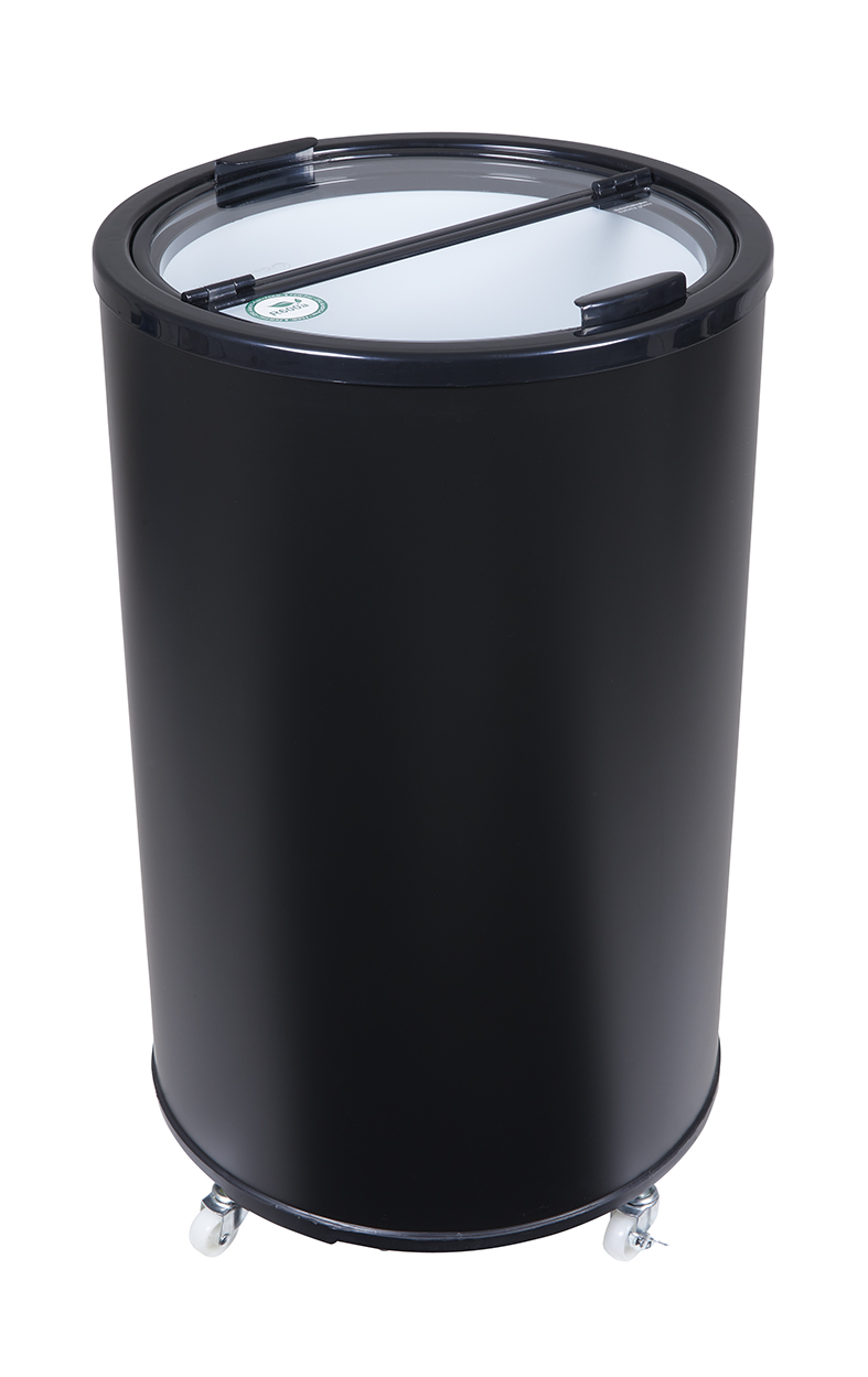 This mood cannon should not be missing at any party! Beverage sales increase significantly when the round party cooler is in the room. It is refreshingly transparent: as a cooler with a glass lid, it gives cool insights into its interior, which keeps 40 liters of chilled drinks ready to hand. With its unusual shape and modern design, it brings a breath of fresh air to spontaneous purchases. Thanks to its compact dimensions and four mobility wheels, the beverage cooler is flexible and mobile. The party cooler for drinks can be customized and used for advertising. Talk to us about the branding possibilities! Special prices for larger quantities (from 10 units) can be requested here. The cool CoolTon is also available for 45, 75 and 85 liters. The Party-Cooler KühlTonne is a commercial cooling device that may only be used commercially.