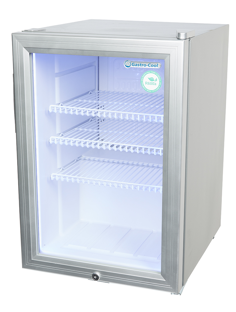 Small refrigerator really big. For cooling drinks in the smallest space, this cooling cube is just great. Its silver exterior shines with the LED interior lighting around the bet. Thanks to lighting and modern design, the bottles and cans in the gastro beverage refrigerator are put in the right light, enriching catering and trade. Please note that the cooling cube is only conditionally suitable for installation. To ensure the function of the device, at least 10 cm space must be left on the sides and upwards. The beverage refrigerator is also available in black and black/white. Special prices for larger quantities (from 10 units) can be requested here. The Gastro-Cool refrigerator with glass door is a commercial refrigerator that may only be used commercially.