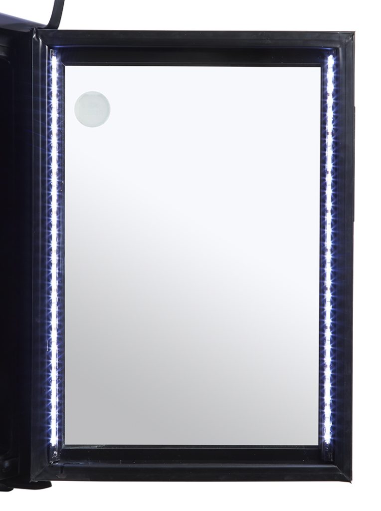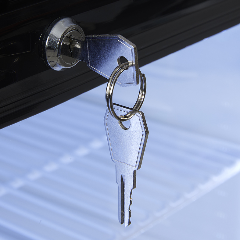 Das Leuchtdisplay auf der Haube unterstützt die Markenführung auch bei geringerer Umgebungsbeleuchtung. LED Innenbeleuchtung und Sicherheitsglas in der Tür unterstützen die Produktdarstellung. Ein Schloss unterstützt den Einsatz in Publikumsbereichen.