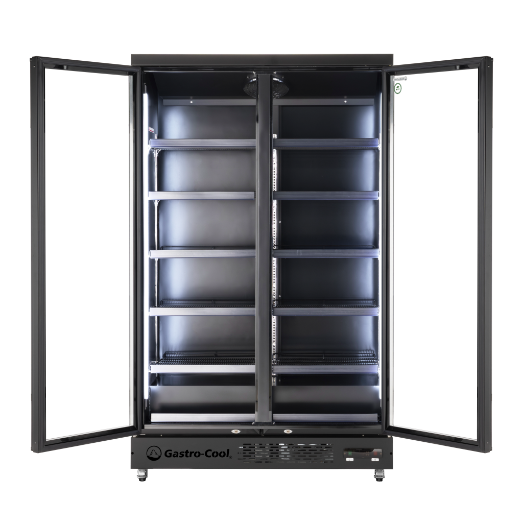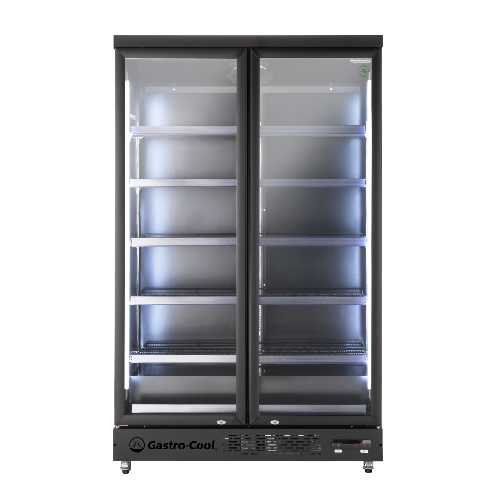 Der GCGD1050 bietet 1.060 Liter Nutzvolumen hinter zwei großen, selbstschließenden Glastüren – ideal für Supermarkt, Kiosk, Tankstelle und Getränkemarkt. Die Doppelverglasung hält die Temperatur auch bei häufigem Öffnen stabil und spart Energie.