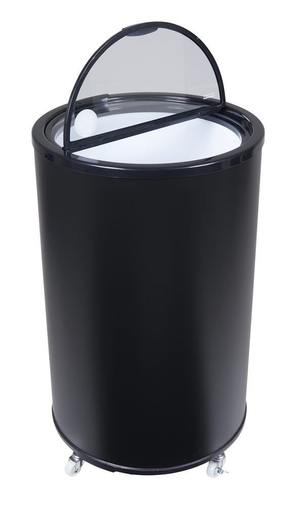 Mit 40 Litern Nutzinhalt bringt der GCPT40 eine auffällige Bauform an den Point of Sale. Der Glasdeckel bietet Sicht auf den Inhalt und unterstützt schnelle Auswahl im Zugriff.